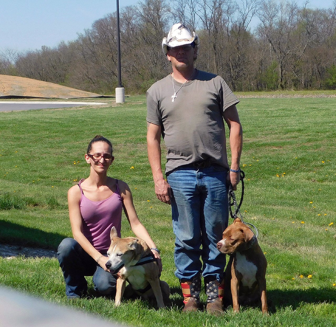 At Right: Joe Allen, his fiancé Sloan, and their dogs Jake and Kilo